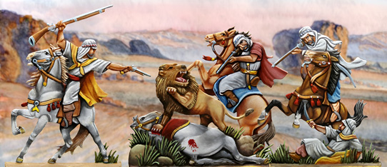 | Lawrence von Arabien in Begleitung arabischer Reiter |