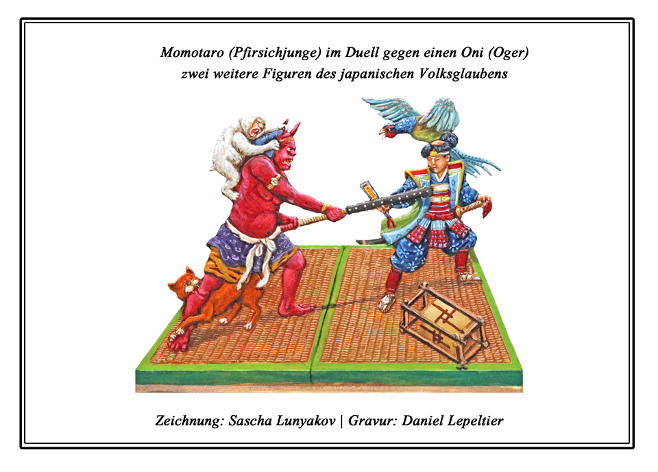 | Momotaro im Duell gegen einen Oni |