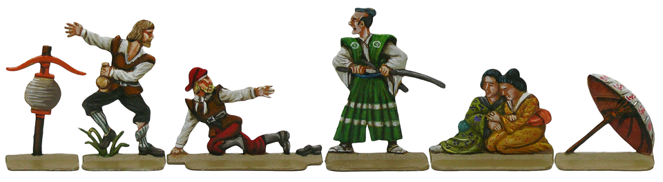 Für eine größere Darstellung klicken Sie auf das Bild. Serie 9 der Klio-Arbeitsgruppe Shogun Zeichnung: Fritz Gorges Gravur: Regina Sonntag Idee: Axel Böcher
